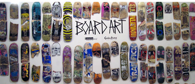 'BoardArt 2009' Centre Of Contemporary Art - Christchurch Exhibition: 1st to 19th of July 2009 "Board Art’ is an annual event at COCA, this will be it’s 7th installment. Board Art is a multifaceted exhibition with several intentions and motivations. Physically, it is a project where artists are invited to create an original artwork using a blank skateboard deck as their common object. The board can be treated as a graphic vessel, a wall mountable sculptural object, or a plinth based sculpture/installation. Participants for this exhibition can be divided in to two categories. The first is an invited selection of contemporary artists, designers and members of the creative community from NZ and abroad - predominantly those with a significant public profile, but also inclusive of emerging and early career designers/illustrators/artists/street artists. The other category consists of 15 students from intermediate, secondary and tertiary level who are selected from a judged competition. The competition involves students submitting their design/artwork on a paper entry form, which then goes before a judging panel. Winning entrants are gifted a blank skateboard to render their concept onto & they are then included as part of the exhibition. As an exhibition it is a celebration of the rich visual culture of skateboarding and the skateboard as an object, with the selection of participants bridging the gaps between fine art, low brow art, graphic design and object. One of the greatest achievements of this exhibition/competition is that it provides our younger participants with the kudos of exhibiting along side some of New Zealand’s most well respected artists and gives them the unique experience of taking ownership of the gallery.